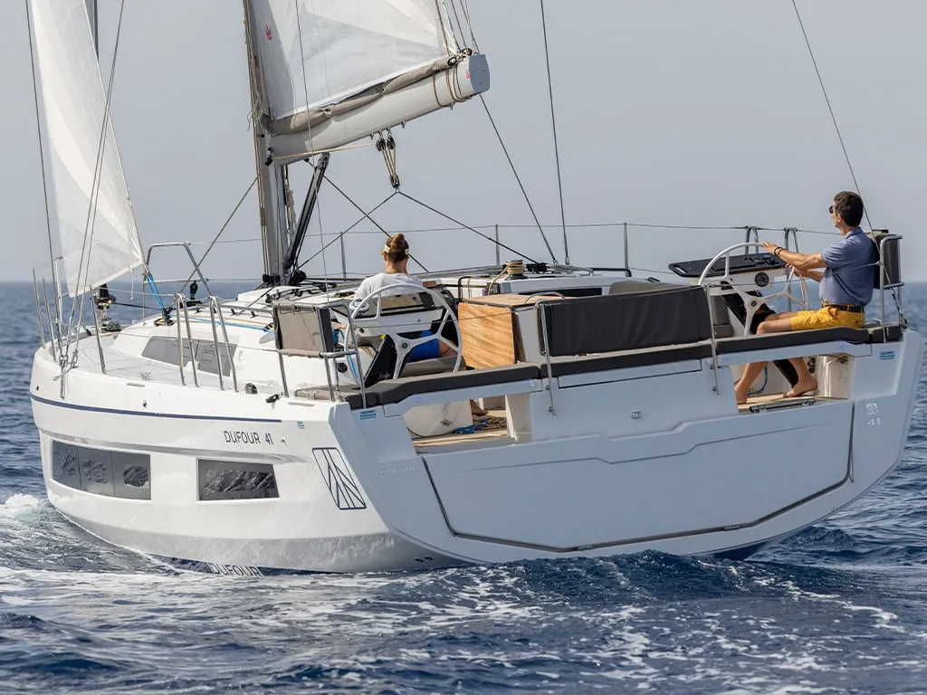 Die Dufour 41 steht für eine neue Generation moderner Segelyachten, die das Leben an Bord neu definiert. Mit über 12 Metern Länge bietet sie großzügige Außenbereiche und einen Cockpitbereich, der in seiner Größe sonst nur auf deutlich größeren Yachten zu finden ist. Perfekt für entspannte Törns mit Familie oder Freunden verbindet die Dufour 41 sportliches Segeln mit höchstem Komfort.