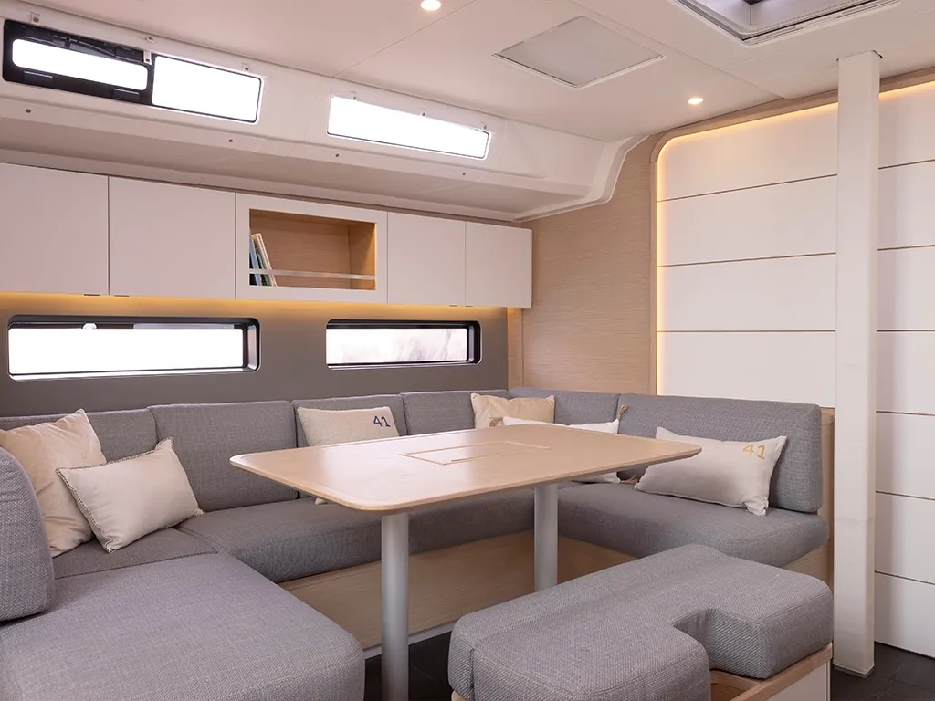 Die große Badeplattform für den direkten Zugang zum Meer sowie Sonnenliegen und der Essbereich im Cockpit versprechen mediterranes Lebensgefühl pur. Ob als Paar, Familie oder kleine Gruppe – die Dufour 41 ist die ideale Charteryacht für Segler, die Komfort, Stil und Performance suchen. Sie vereint das Beste aus zwei Welten: sportliches Segeln und luxuriöses Wohnen auf dem Wasser.