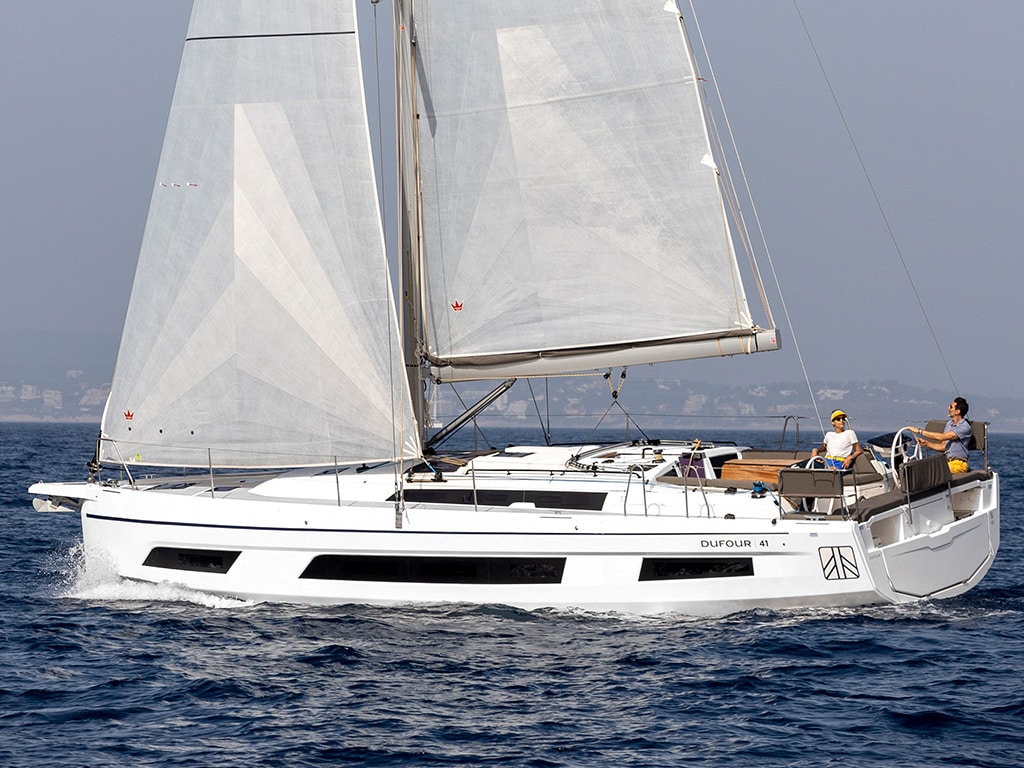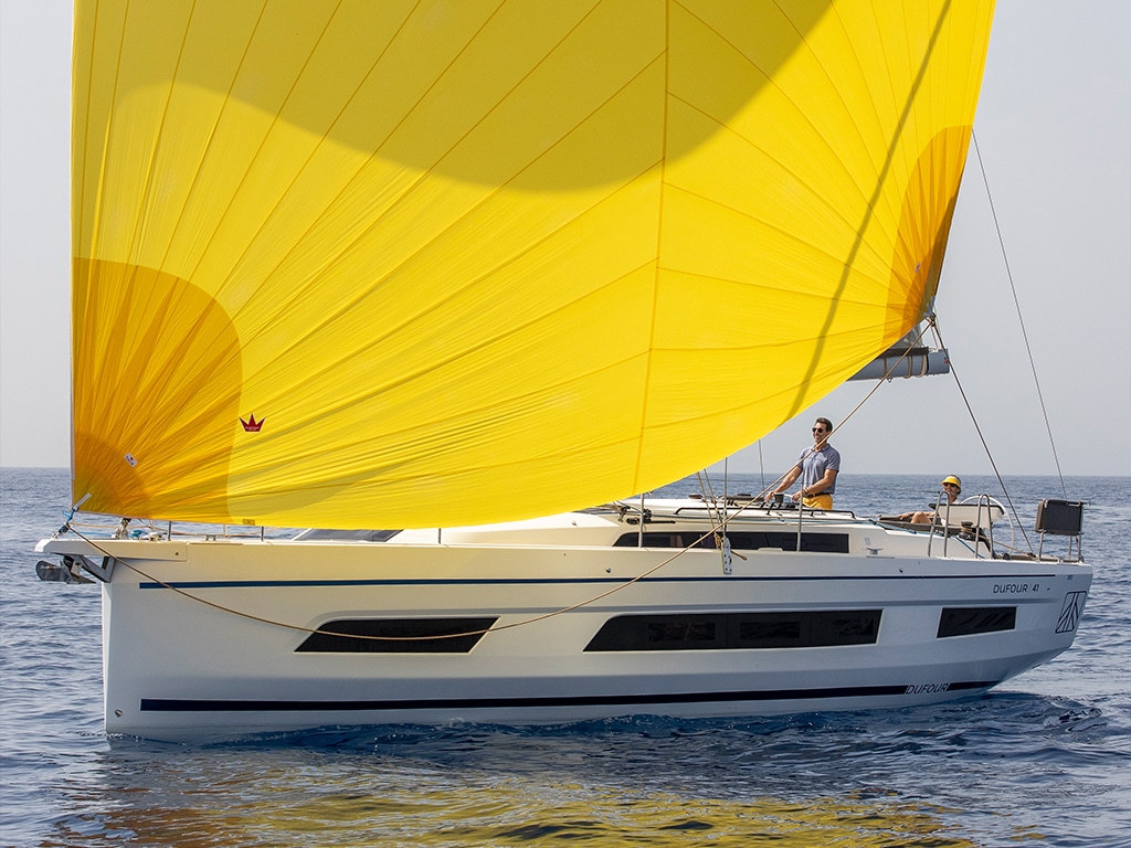 Die Dufour 41 steht für eine neue Generation moderner Segelyachten, die das Leben an Bord neu definiert. Mit über 12 Metern Länge bietet sie großzügige Außenbereiche und einen Cockpitbereich, der in seiner Größe sonst nur auf deutlich größeren Yachten zu finden ist. Perfekt für entspannte Törns mit Familie oder Freunden verbindet die Dufour 41 sportliches Segeln mit höchstem Komfort.